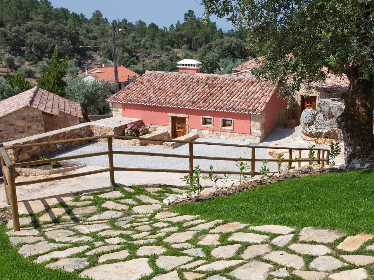 Feel the tranquillity of this country house and enjoy the pure fresh air, the swimming pool, shade of the olive trees and centenarian oak trees, while you rest your gaze on the beautiful woodland landscape and neighbouring mountains.