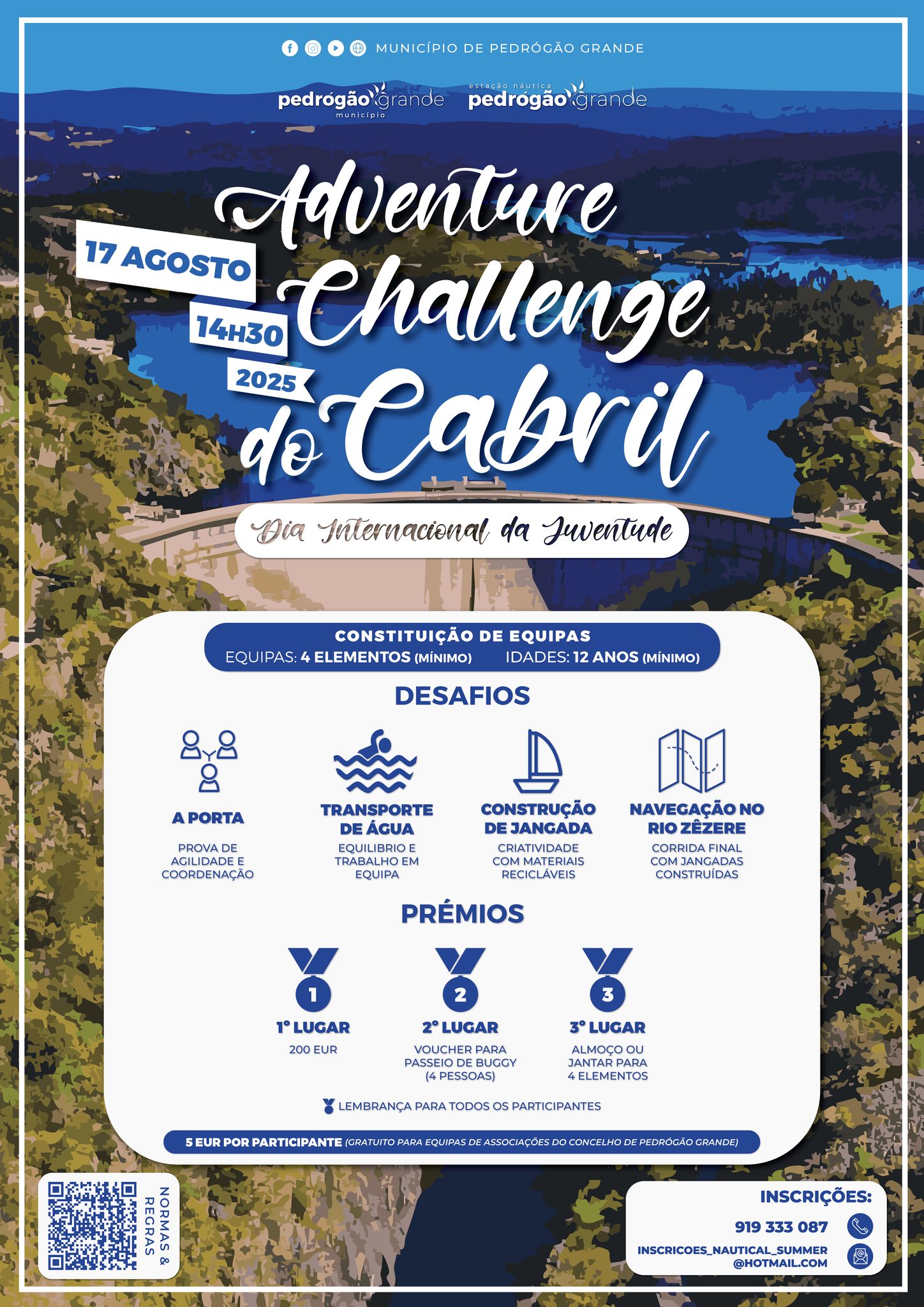 No dia 17 de agosto, a partir das 14h30, a Albufeira do Cabril, no município de Pedrógão Grande, vai ser palco do 1.º Adventure Challenge, um evento que promete uma tarde cheia de superação, criatividade e espírito de equipa, junto ao magnífico cenário do rio Zêzere.