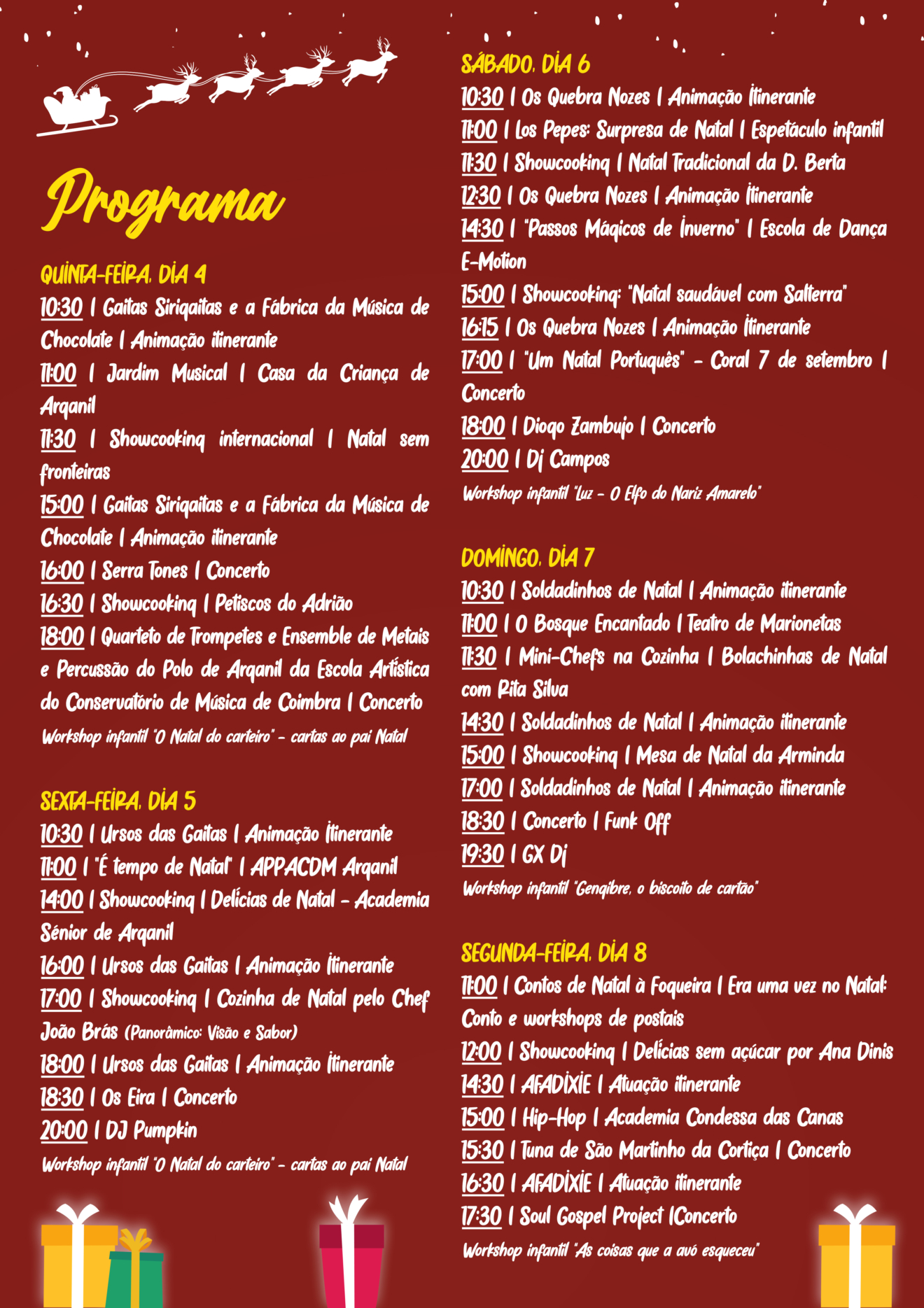 Entre showcookings, espetáculos, atividades infantis, artesanato local e produtos regionais, não vão faltar motivos para viver o verdadeiro espírito natalício. O Pai Natal e os seus duendes também marcam presença, garantindo momentos de fantasia e alegria.