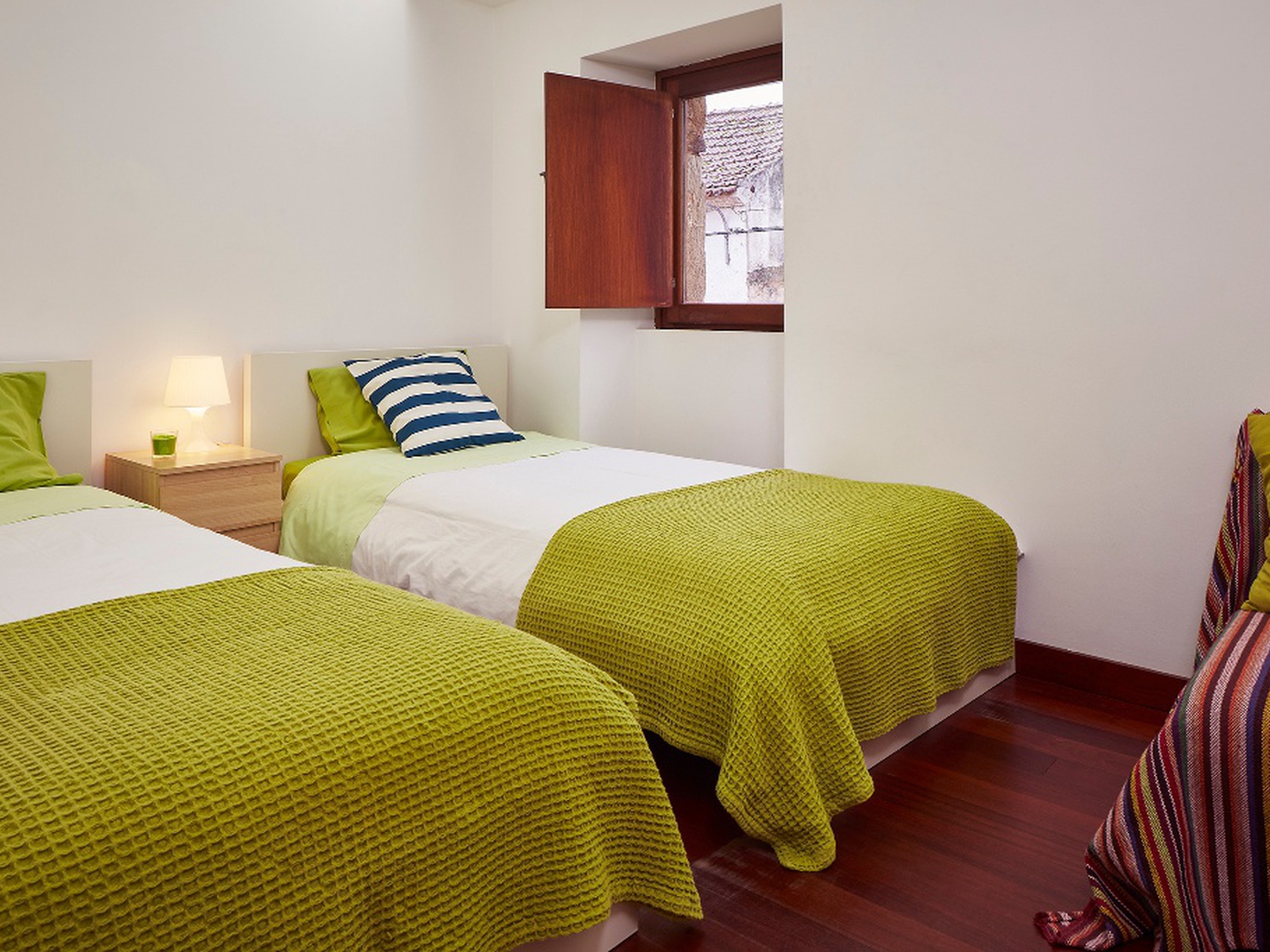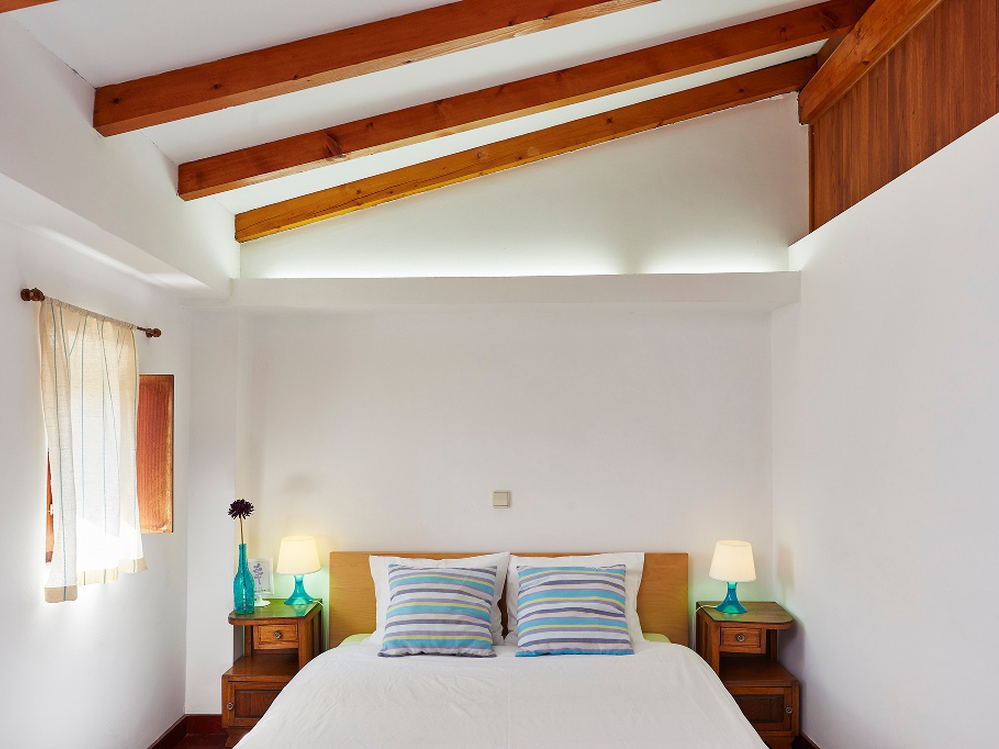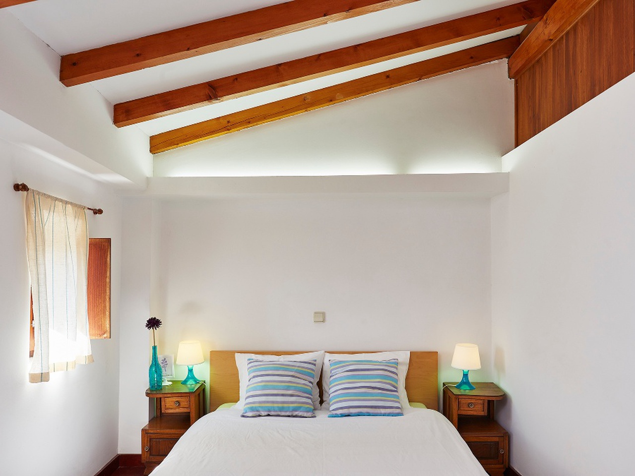 Casa com dois quartos duplos e uma suite.
