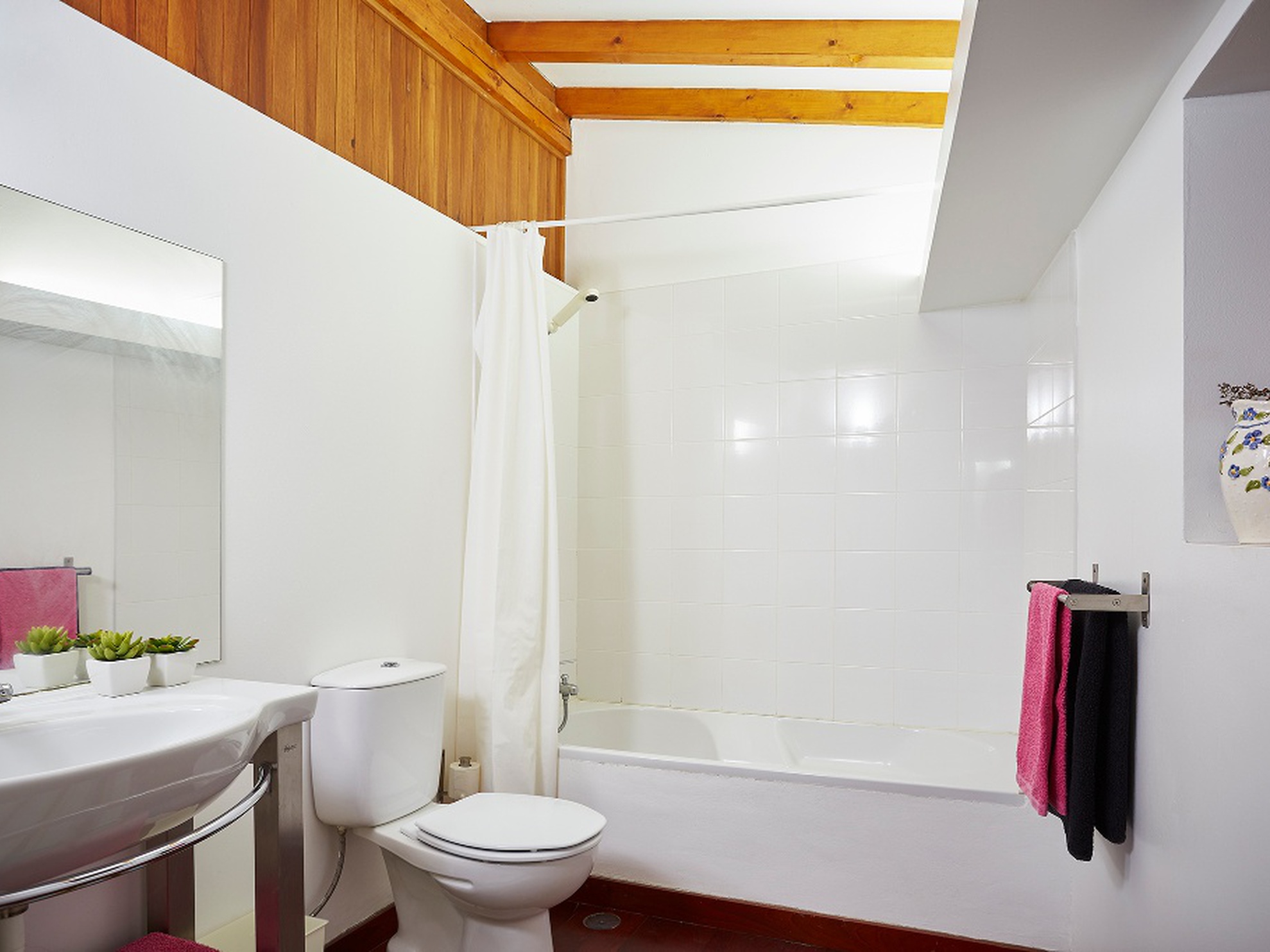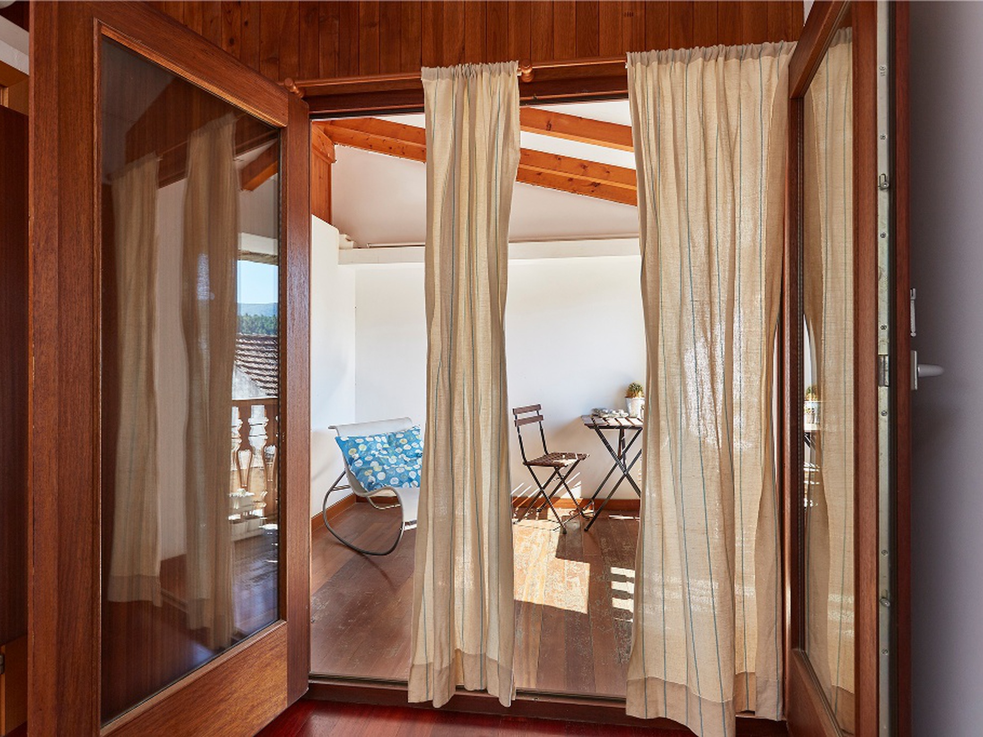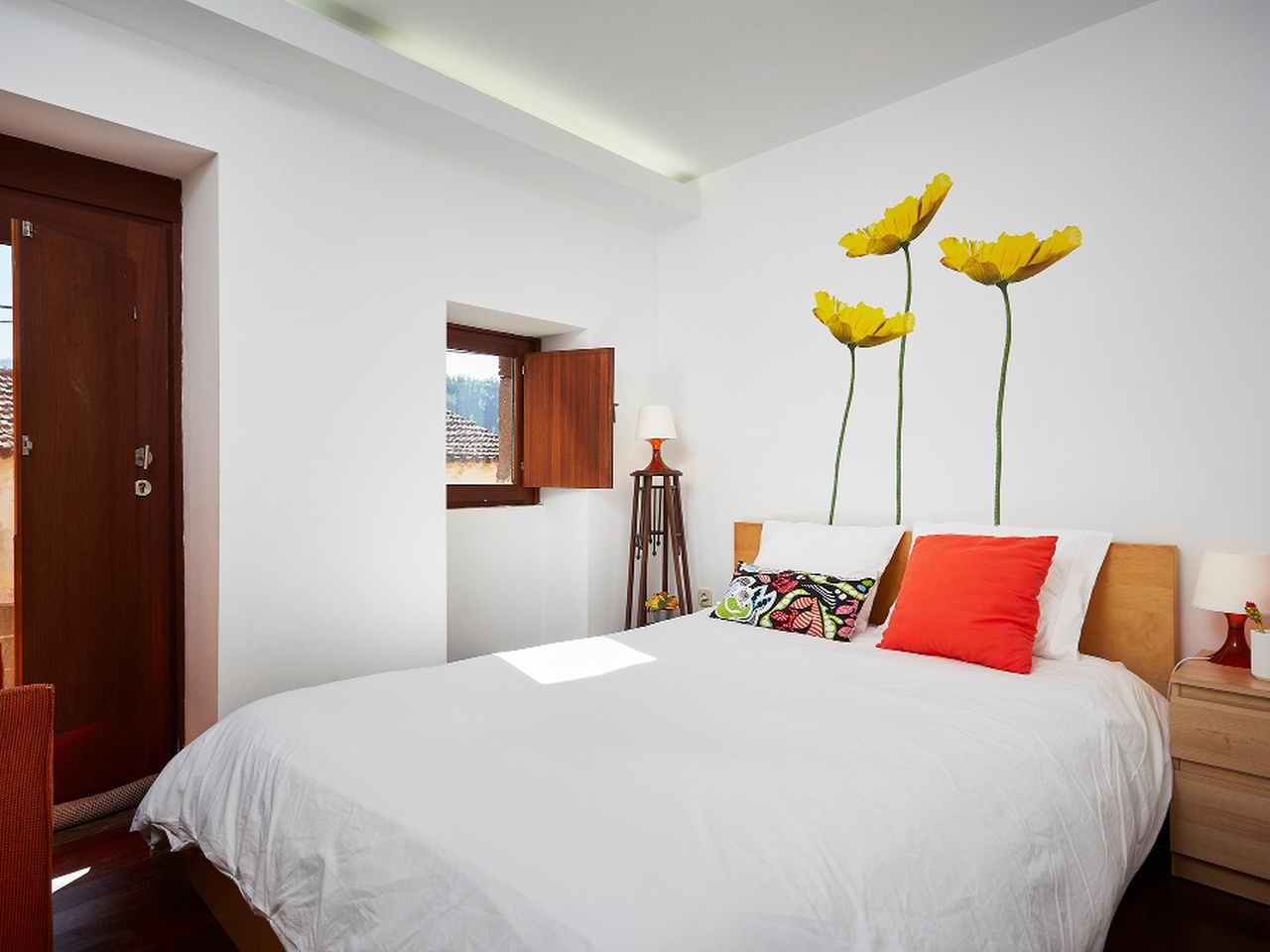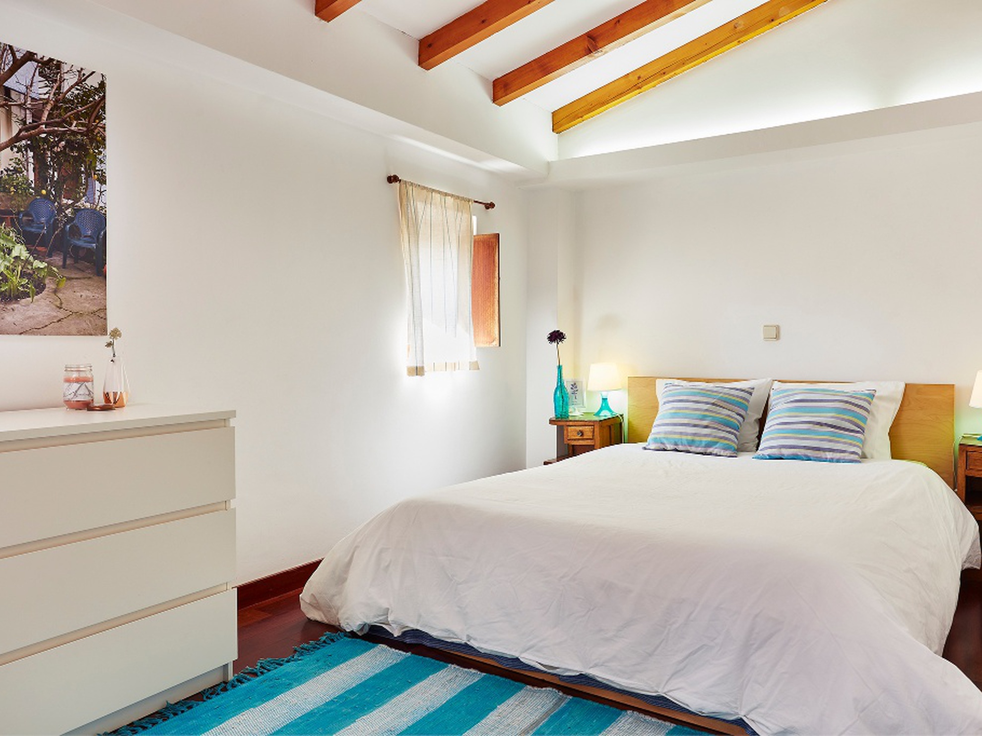 Casa com dois quartos duplos e uma suite.