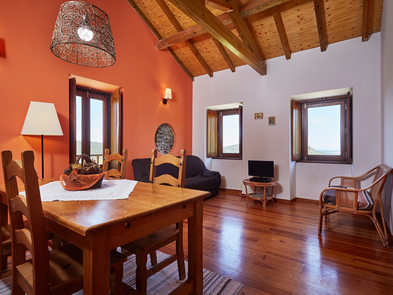 No primeiro piso, a Coruja é rainha no seu Ninho, com todo o conforto propiciado pela cozinha equipada, sala de estar, quarto de casal e casa de banho. No Ninho da Coruja, dorme a sabedoria, o encanto e o mistério das Aldeias do Xisto.