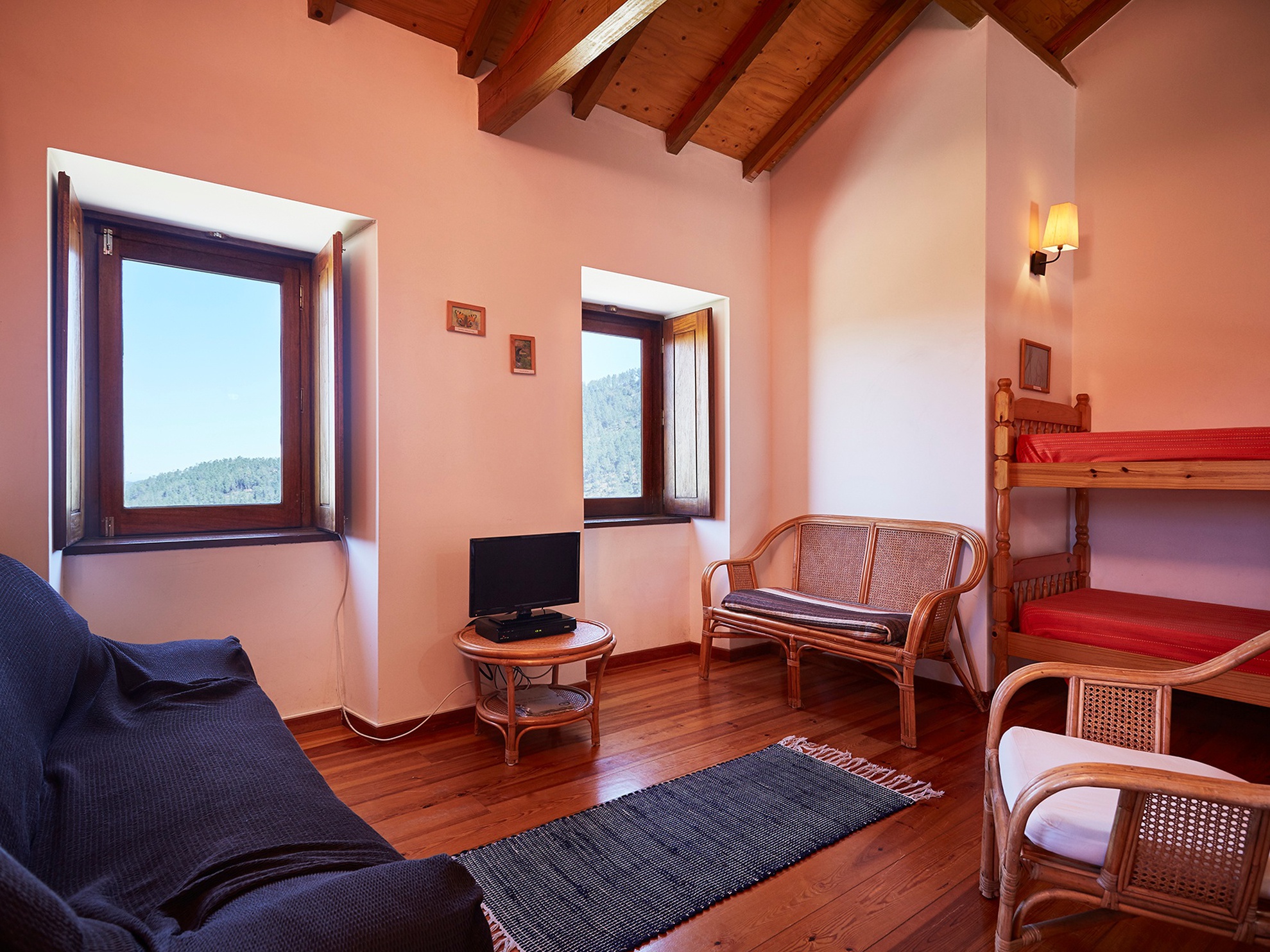 No primeiro piso, a Coruja é rainha no seu Ninho, com todo o conforto propiciado pela cozinha equipada, sala de estar, quarto de casal e casa de banho. No Ninho da Coruja, dorme a sabedoria, o encanto e o mistério das Aldeias do Xisto.