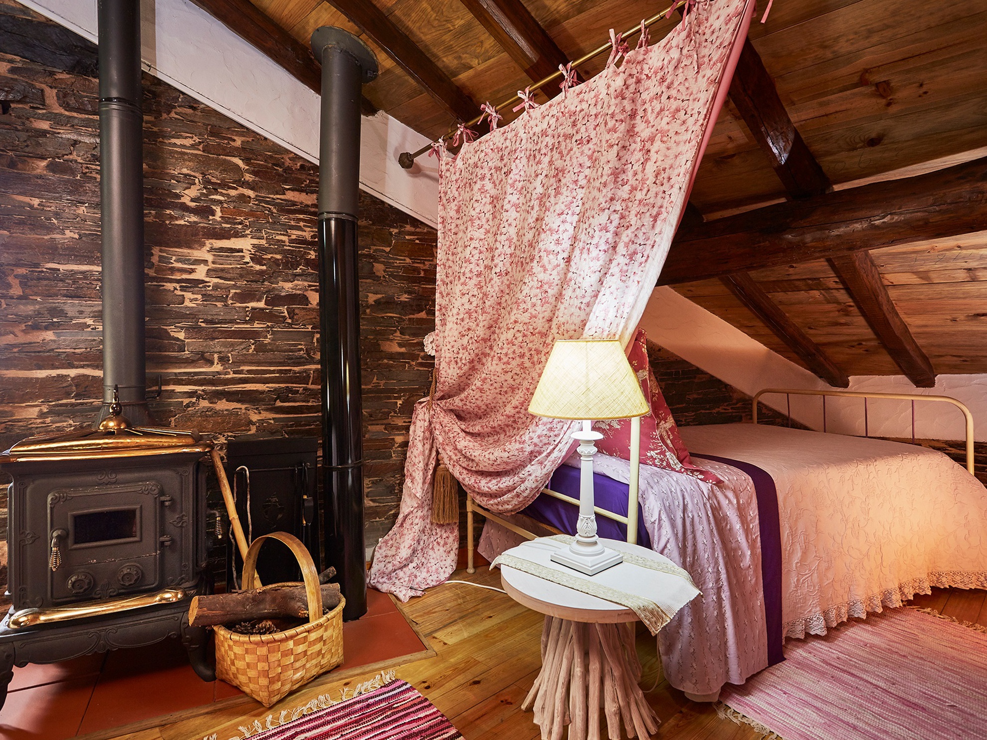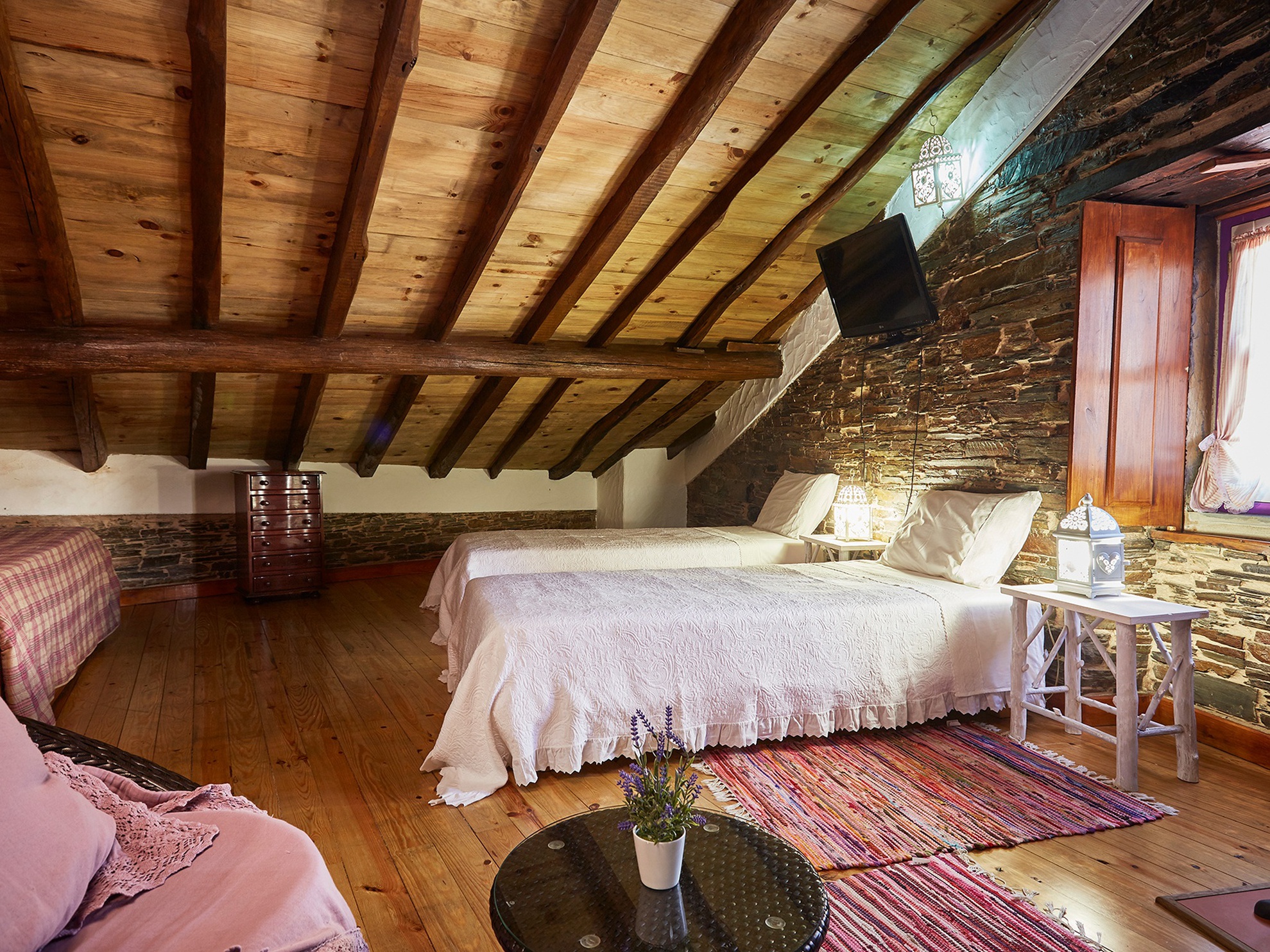No 2.º piso, existe um quarto amplo com várias camas e uma casa de banho privativa. As paredes são em xisto, o teto e soalho de madeira. À disposição existe uma salamandra para aquecimento e duas janelas com vista panorâmica para a serra do Açor.
