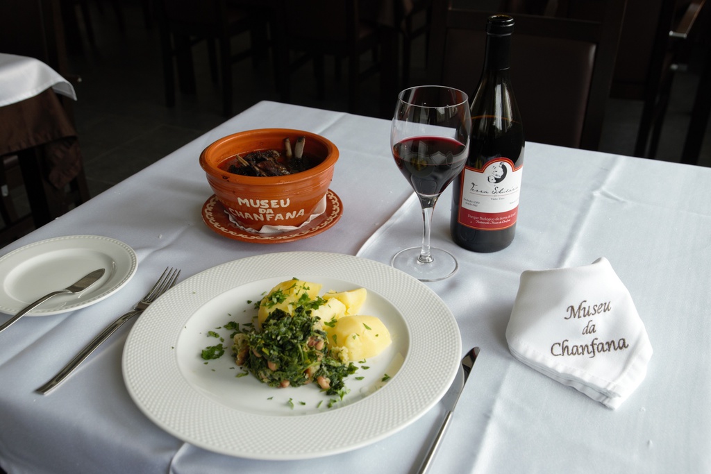 Como o nome deixa adivinhar, aqui impera a chanfana, um prato regional feito com carne de cabra velha amaciada com vinho tinto. A chanfana, a sopa de casamento ou a nabada de Semide, tão típicas da região, serviram de inspiração aos chefes Vítor Fernandes e Luís Rodrigues para a criação do Menu Espírito do Lugar.